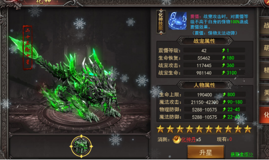 (2).新增战宠养成--化神,提升震慑效果,需消耗化神丹