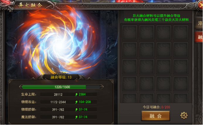d. 融合异火材料可以提升融合等级,有概率获取三千焱炎异火材料和装备合成材料;