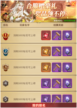 合服后开启7日累充活动,累计充值达到对应额度即可领取奖励