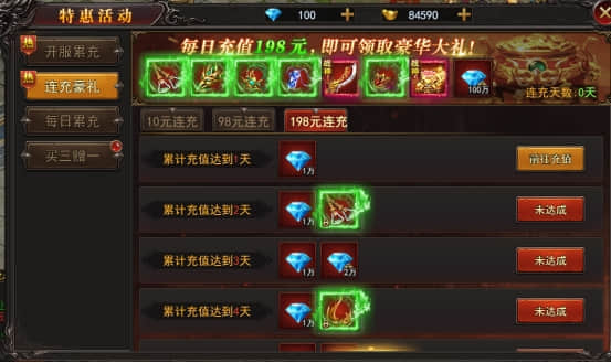 【活动内容】活动期间,每天累计充值相应的价格,即可领取丰厚奖励